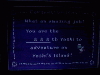 先说一下耀西岛的版本.它总共有两个版本,第一个是在超任SFC上的,第二个即在GBA上的冷饭.不过冷饭归冷饭,任天堂在这个GBA版上有附加了6个秘密关,通关一周目之后就会看到,其中第6个SECRET关超级BT,消耗了我百多条命才最终达成100分.
